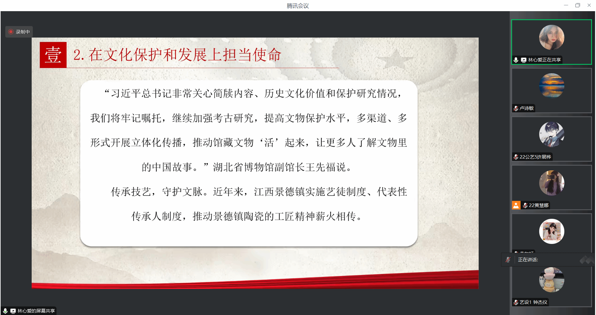 为深入贯彻习近平总书记重要讲话精神,进一步加强学生党小组的凝聚力,艺术太阳成集团tyc33455学生党支部第三党小组于12月20日在腾讯会议组织召开党小组会议。本次会议旨在学习关于习近平总书记在湖北考察时强调的重要指示。