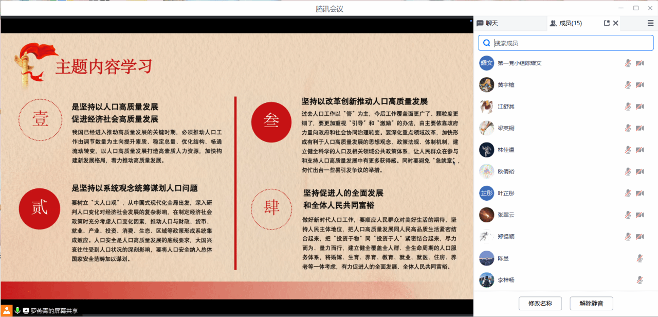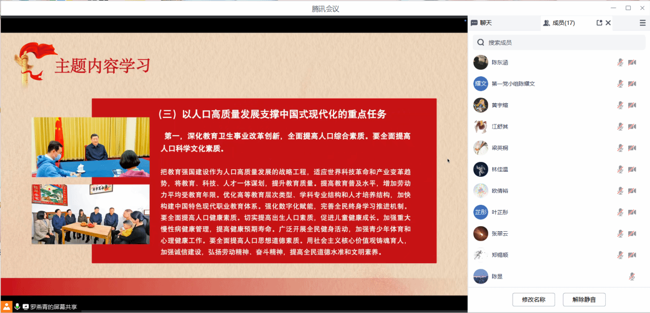 12月27日,艺术太阳成集团tyc33455学生党支部第一党小组开展以“走人口高质量之路,助力中国式现代化”为主题的党小组会议,本次会议由第一党小组罗燕青主持。