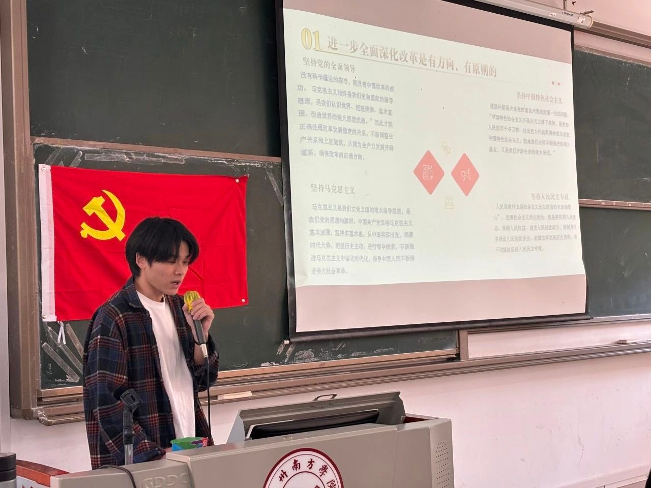 通过学习本次党课,同学们不仅深刻领悟了守正创新的时代精神,而且在全面深化改革的理论探索中得到了新的启示和提升。希望同学们将所学知识与实际紧密结合,始终以饱满的热情和坚定的信念,将此次所学的宝贵财富内化为具体行动。