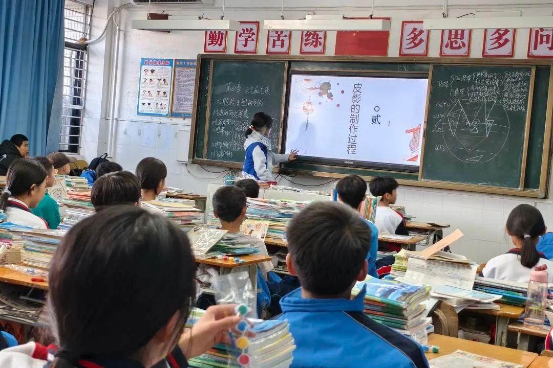 制作完成后,孩子们迎来了作品展示环节。每个学生都小心翼翼地捧着自己的作品,脸上写满了自豪与期待。皮影作品千姿百态,精致的线条与明艳的色彩体现了孩子们的想象力与创造力。在互相欣赏和分享过程中,教室里欢声笑语不断。有的同学兴奋地讲述制作时的趣事,有的则认真评价其他人的作品,气氛其乐融融。虽然没有正式的皮影表演,但那份满溢的欢愉和对艺术的热爱,仿佛已经让每一个皮影角色都“活”了起来。