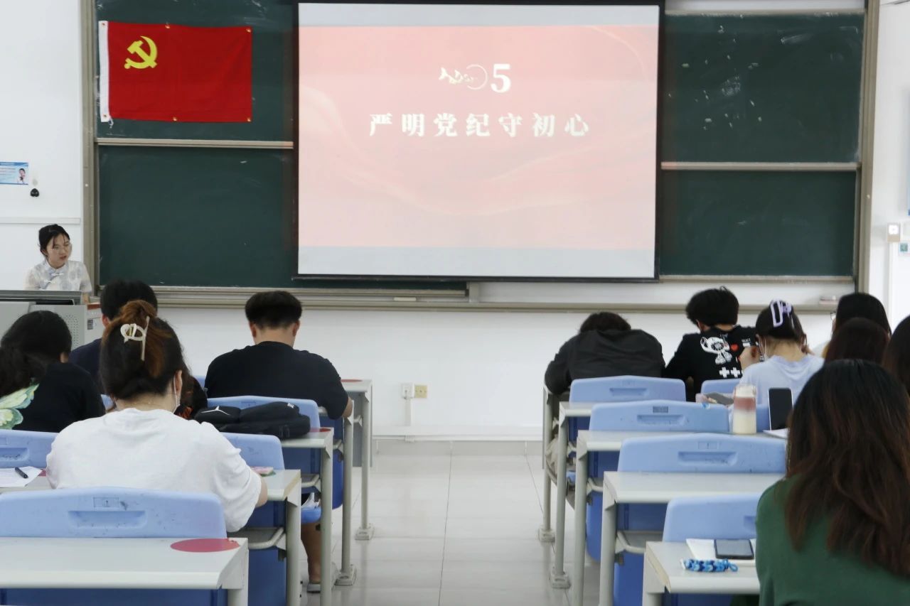 学生党支部副书记陈娜老师围绕《中国共产党纪律处分条例》,根据中国共产党的章程,对违法犯罪党员的纪律处分加以讲解,加强发展对象的自我监督性和保持清正廉洁的意识。推动新时代党纪学习教育走深走实,体现了成为一位合格的党员应坚定理想信念,筑牢信仰之基。