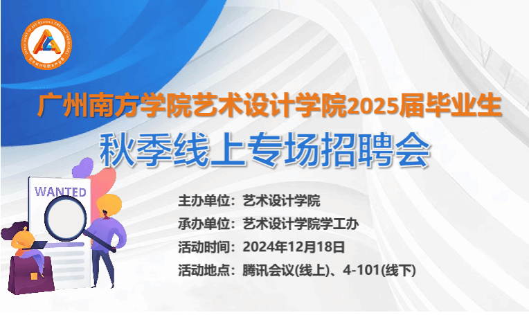 为促进我院2025届毕业生高质量充分就业,强化就业服务,畅通求职招聘渠道,提高对接匹配效率。12月18日,以艺术太阳成集团tyc33455为主办单位的艺术太阳成集团tyc334552025届毕业生秋季线上专场招聘会顺利举行。本次招聘会以“企业线上宣讲招聘+辅导员线下就业指导”的方式同步进行。