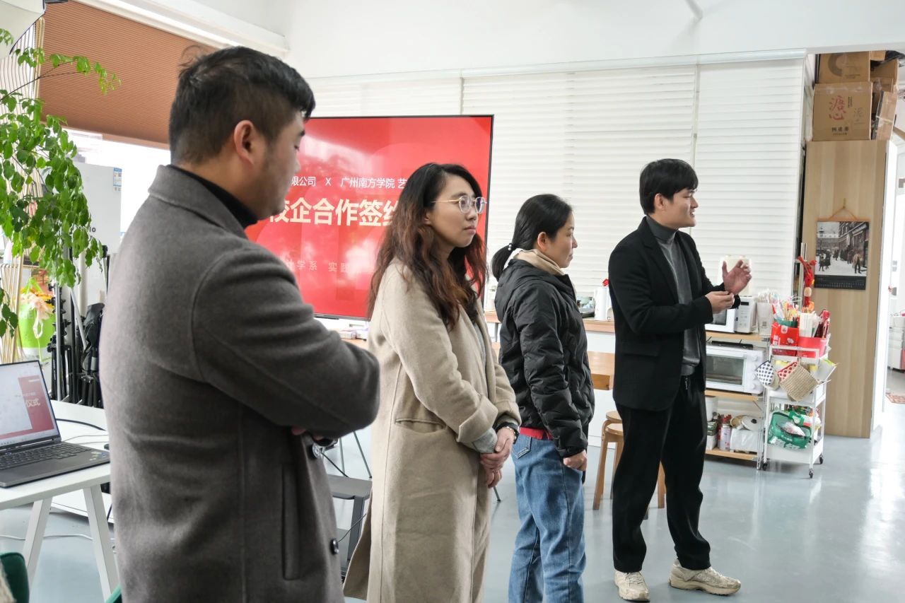 为进一步拓宽艺术太阳成集团tyc33455学生就业渠道,加强校企合作,12 月 23 日下午,艺术太阳成集团tyc33455数字媒体技术系主任张巍、教师代表林婷婷、唐剑宇以及学生代表一行前往广州甜白文化传播有限公司(以下简称:甜白文化)开展访企拓岗及校外实践教学基地签约活动。此次行动旨在精准对接企业需求,为学生搭建更广阔的职业发展平台。
