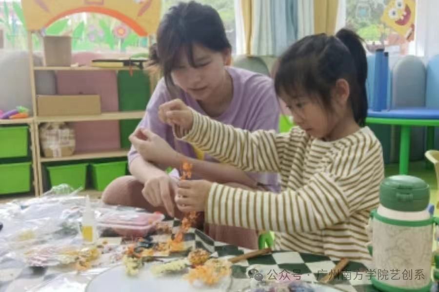 “绘心”义教志愿队将“我为师生办实事”落到实处,聚焦我校教职工子女课余活动较为匮乏这一急难愁盼问题,坚持每周末面向校内适龄教职工子女开放美育小课堂,组织艺创系学生党员、发展对象、积极分子担任美育课堂“小老师”,以美育浸润“小老师”“小同学”“小朋友”,教学相长知行合一,同步提升文化理解、审美感知、艺术表现、创意实践等核心素养,用美育工作的责任感、使命感感召“小老师”,塑造人格魅力,厚植美育情怀。