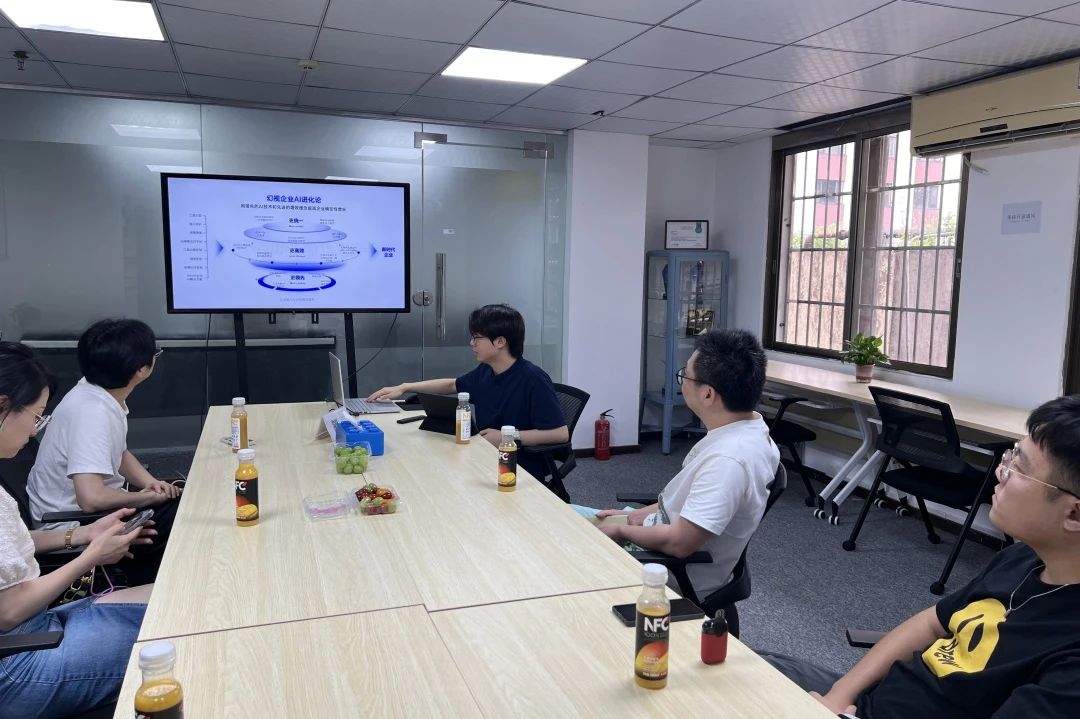 在幻视科技公司李剑聪的热情接待下,首先参观了幻视科技的研发中心、设计工作室及展示厅,对公司在数字媒体技术领域的最新研发成果和创新应用有了直观的了解。随后,双方进行了座谈交流,就AI技术在艺术领域的创新应用、未来发展趋势以及人才培养等方面进行了深入的探讨。