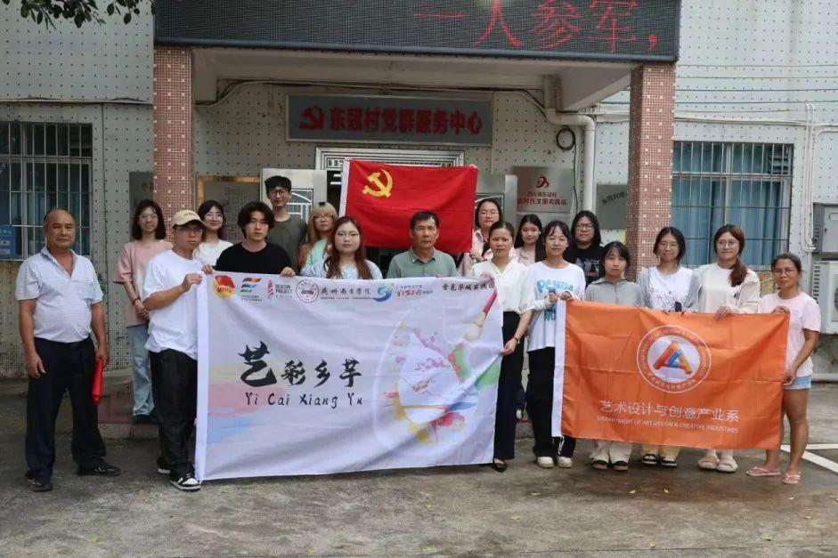 为深入学习贯彻党的二十大精神和习近平总书记视察广东重要讲话、重要指示精神,引导广大青年学生把课堂学习和乡村实践紧密结合起来。2024年7月初,由队长罗燕青带队的“古邑华城实践团”突击队前往江门台山市四九镇东冠村进行深入调研访问。此次调研内容主要围绕“百千万工程”突击队工作的进展状况以及未来10天墙绘设计安排,其目的为了更加全面地利用艺术形式增加产业活力,满足该地的产业需求。“古邑华城实践团”是一支怀揣青春理想、充满青春活力、能吃苦肯奋斗的团队,队伍由系主任冯原教授、系团委书记李淑娜、专任课教师汪敬雯指导,队长为罗燕青,队员有胡馨然、唐腾飞、郑彤、蔡健鸿、闫志勇、钟绣灵、罗伊蓝、彭江楠、薛小欢、黄艺珊、王佳燕、梁泳琳、吴宇、冯小菡共十五名同学。