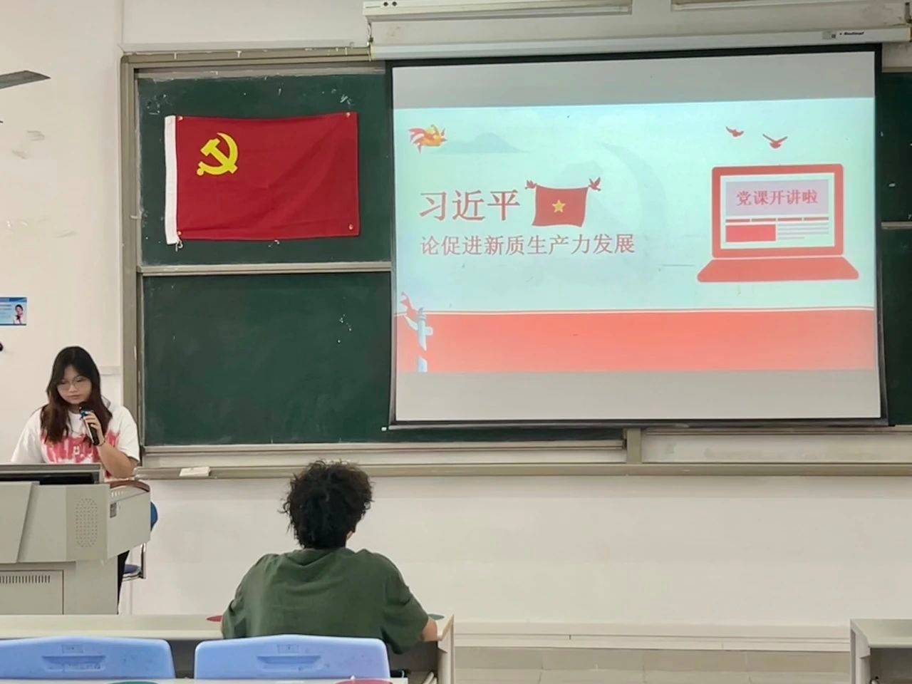 4月3日,艺术设计与创意产业系学生党支部在3教303开展“习近平论促进新质生产力发展”主题党课,本次党课由罗燕青同学主讲。