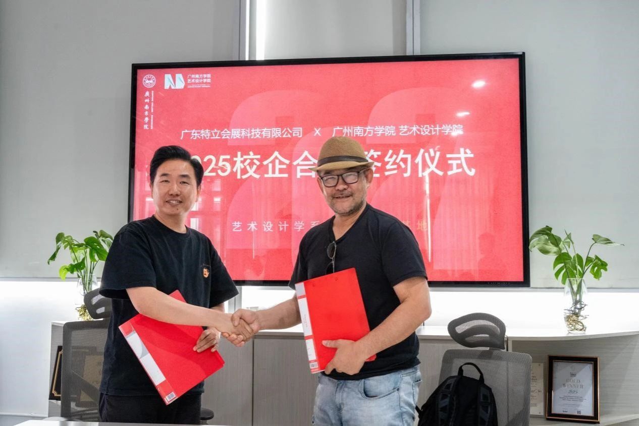 2025 年 5 月 8 日,艺术太阳成集团tyc33455院长冯原率领师生代表走进广东特立会展科技有限公司。此次走访以产教融合与协同创新发展为核心,围绕艺术设计人才培养与展览科技产业需求精准对接展开深入交流,最终双方达成战略合作并签署协议,开启艺术设计专业人才共育的创新篇章。