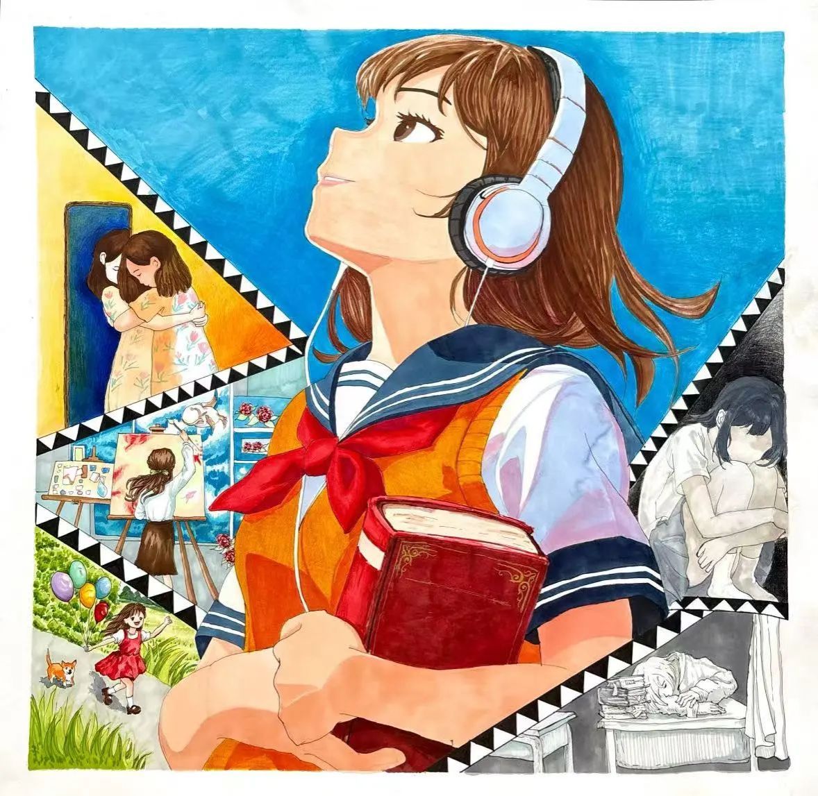 此次比赛为学生提供了展现内心世界的平台,通过画笔表达情感与思考,体现了积极向上的心理品质。作品不仅呈现出视觉上的美感,也为心理健康教育注入了新的创意与活力。活动的成功举办,不仅是一次艺术的交流,更是一次心灵的碰撞,体现了当代大学生乐观进取的精神风貌。期待未来继续以积极心态面对挑战,用色彩描绘希望,共同迎接下一次充满温度与光芒的心灵之旅。
