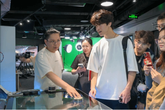在广州口可口可软件科技有限公司的产品展示区,龚鸣副校长一行参观并体验了数字艺术展示系统、室内视觉交互创新全息设计系统、数字可视化与交互显示系统等新型设备。
