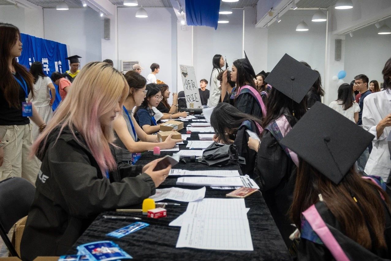 最后,在毕业帽领取区,工作人员将一顶顶经过精心装饰、富有设计感的毕业帽递到符合条件的毕业生手中。这既是对优秀学子的表彰,也是一份独具纪念意义的毕业礼。同学们手捧毕业帽,纷纷拍照留念,记录下这份专属荣誉与成长的见证。