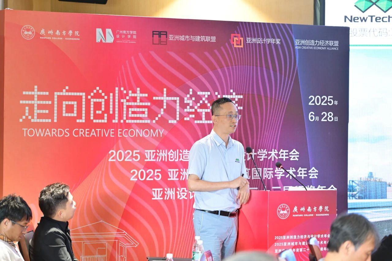 华南理工大学环境设计系主任谢冠一教授发言指出,当前社会和产业面临巨大变革与挑战,设计行业亦不例外。谢教授表示,面对复杂多变的社会环境,设计思维的转型至关重要,并期待通过此类聚会激发更多关于设计教育及产业改革的深入讨论,共同探索未来发展的新路径。